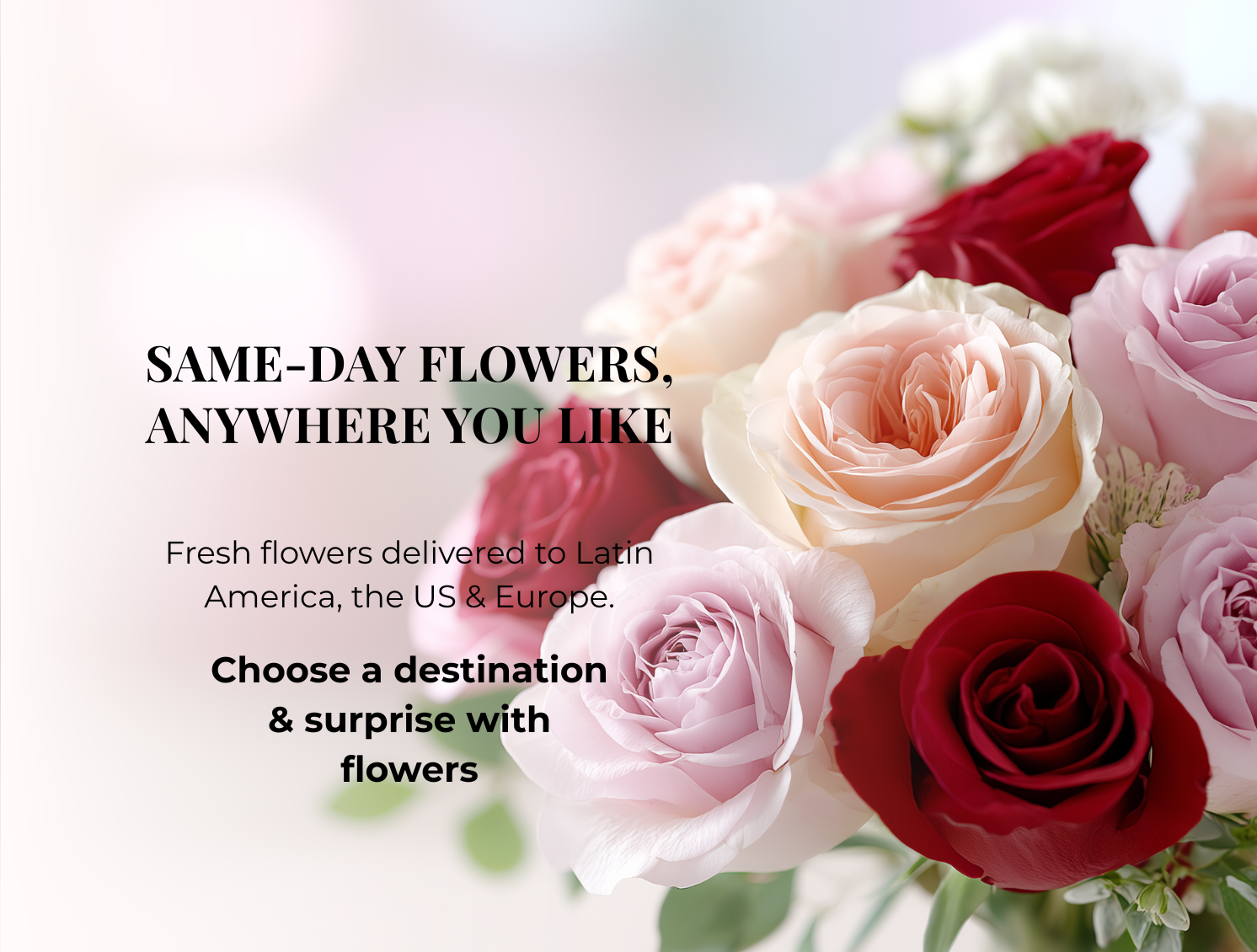 We offer home delivery services across Latin America, the United States, and Europe, so you can share special moments with your loved ones no matter the distance. We create the most beautiful and fresh bouquets for birthdays, anniversaries, and any celebration. Plus, we have special combos that include chocolates, balloons, and plush toys to make every occasion even more memorable.
