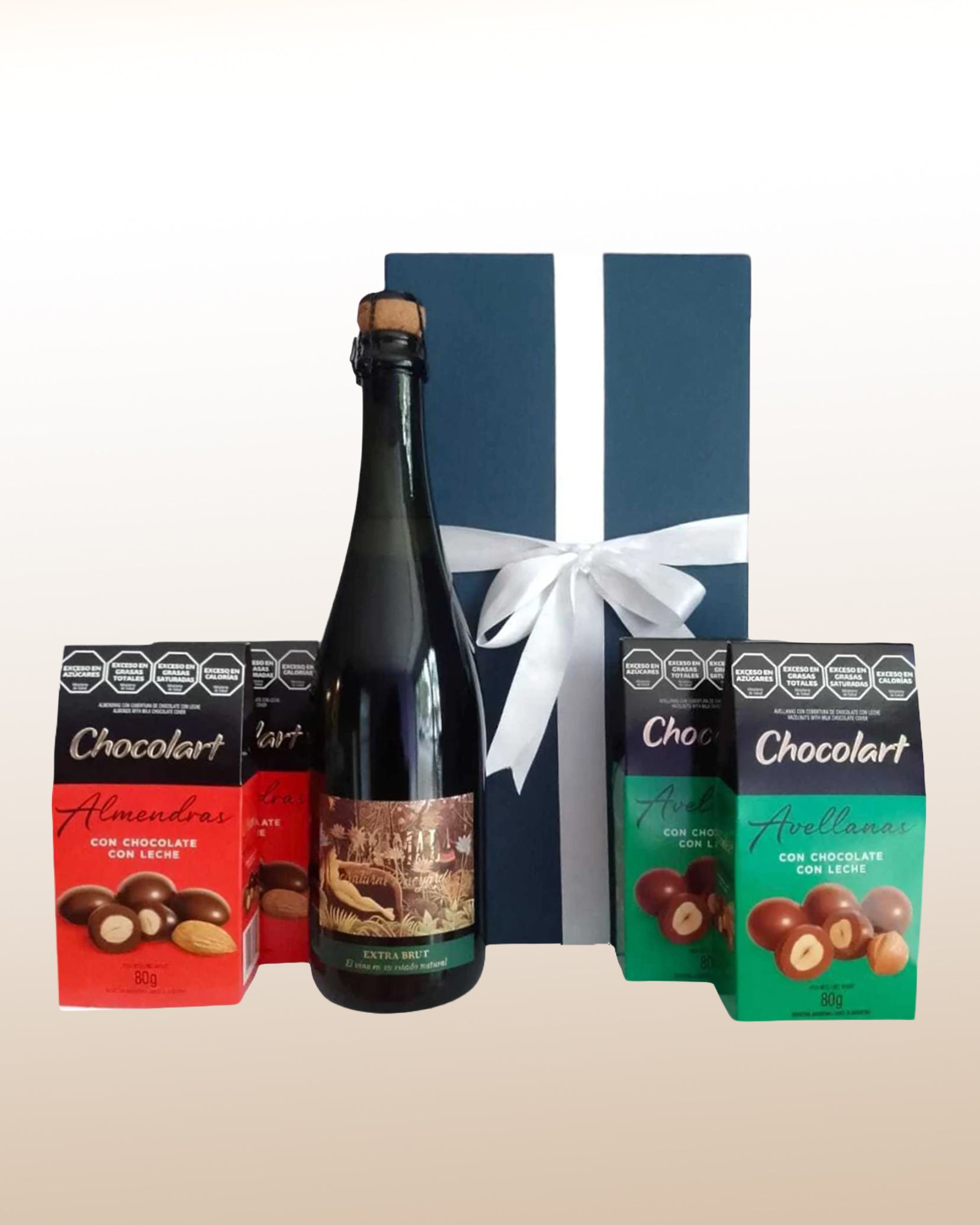 A small but meaningful treat for those toasts that deserve something delicious beside them. Crunchy chocolate nuts and a bright sparkling wine make this set ideal for celebrating, saying thanks or sharing a sweet moment.