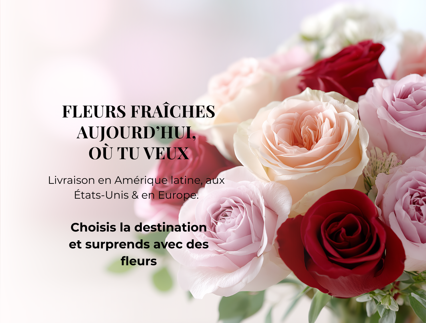Nous proposons des services de livraison à domicile en Amérique Latine, aux États-Unis et en Europe, pour que vous puissiez partager des moments spéciaux avec vos proches, peu importe la distance. Nous créons les plus beaux et les plus frais bouquets pour les anniversaires, les célébrations et toutes les occasions. De plus, nous avons des combos spéciaux incluant des chocolats, des ballons et des peluches pour rendre chaque occasion encore plus mémorable.