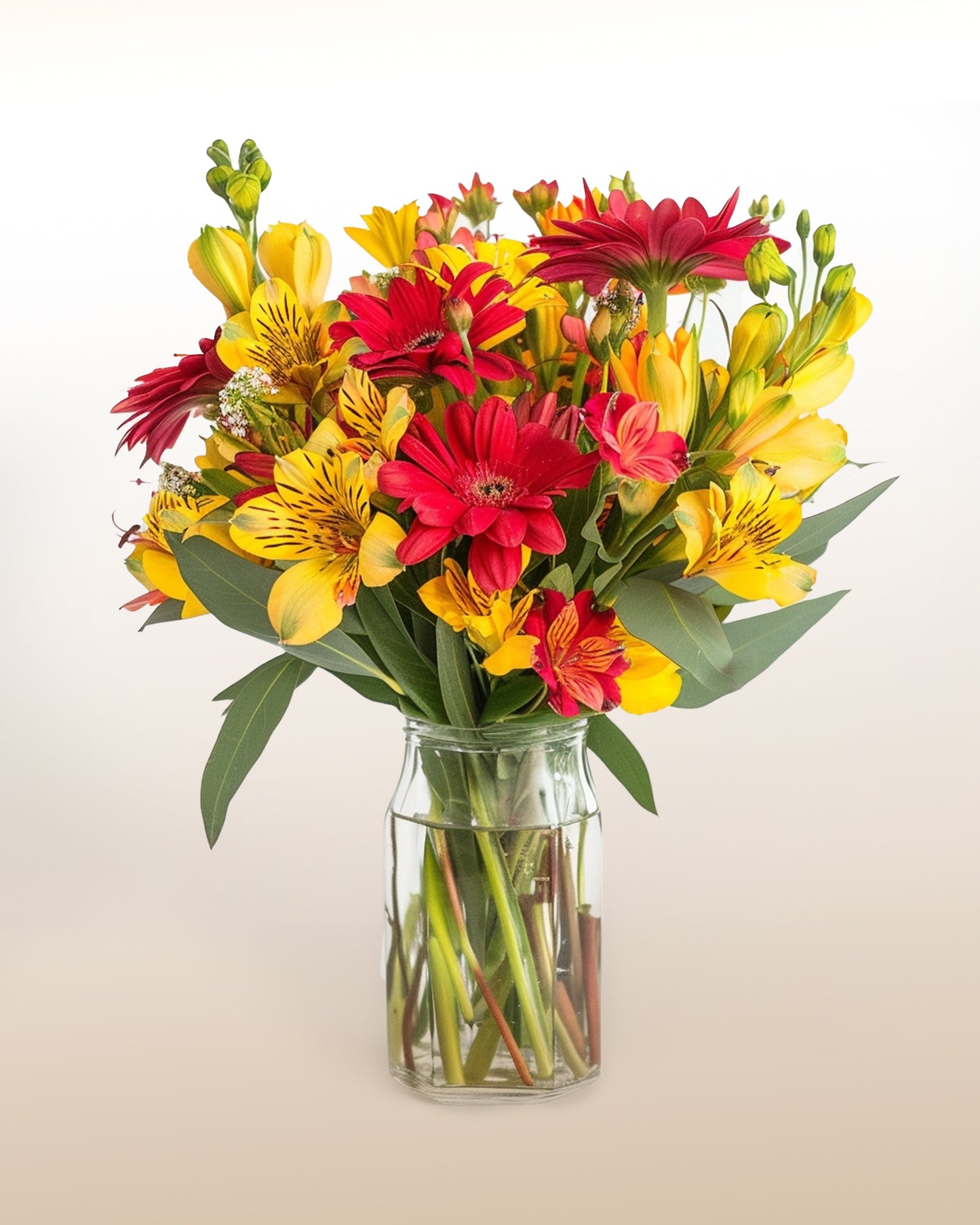 Un maravilloso arreglo de Gérberas con Astromélias que adorna cualquier lugar.