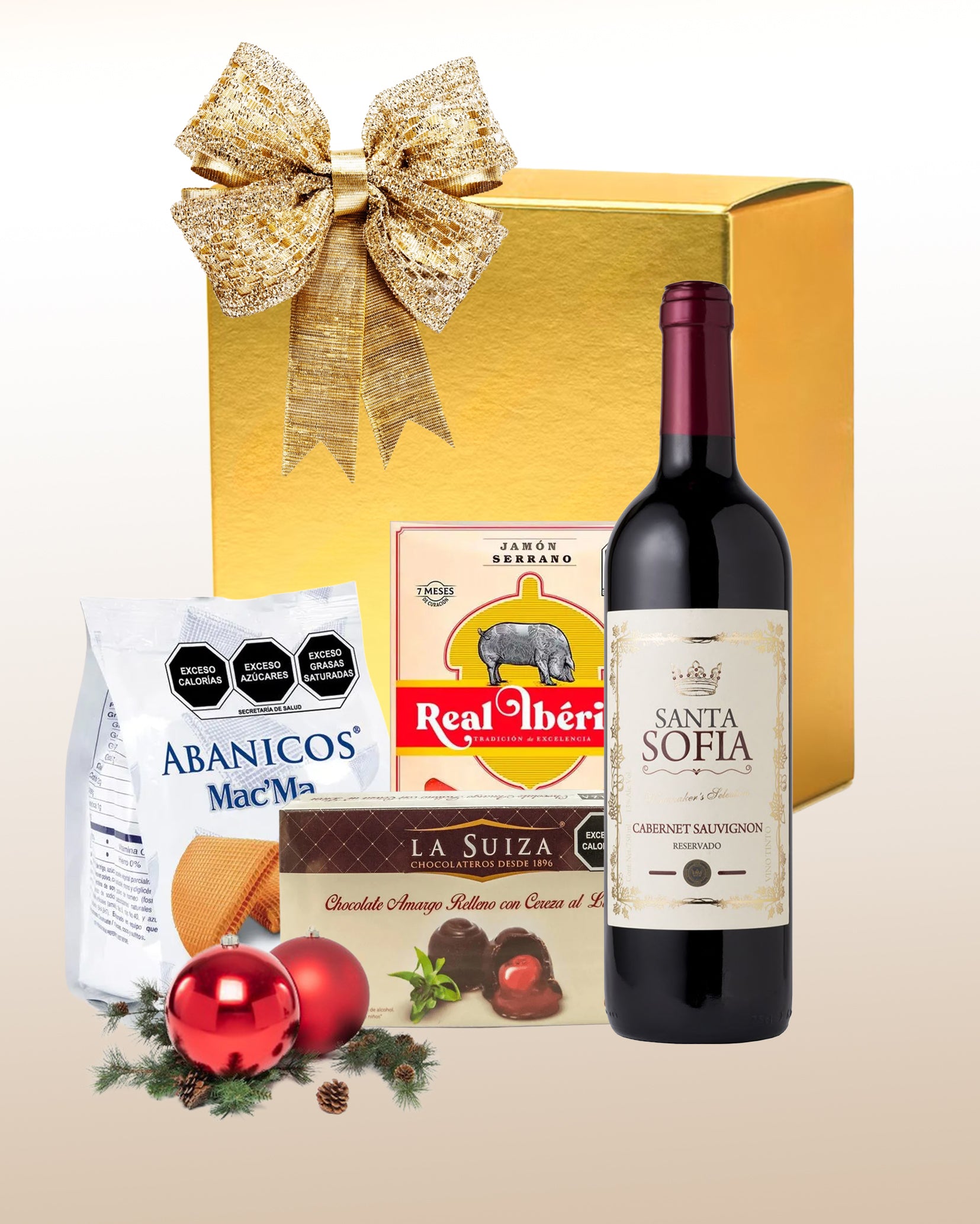 • Vino tinto español Cabernet Sauvignon / Merlot 750 ml: Perfecto para acompañar el jamón y brindar en estas fiestas.