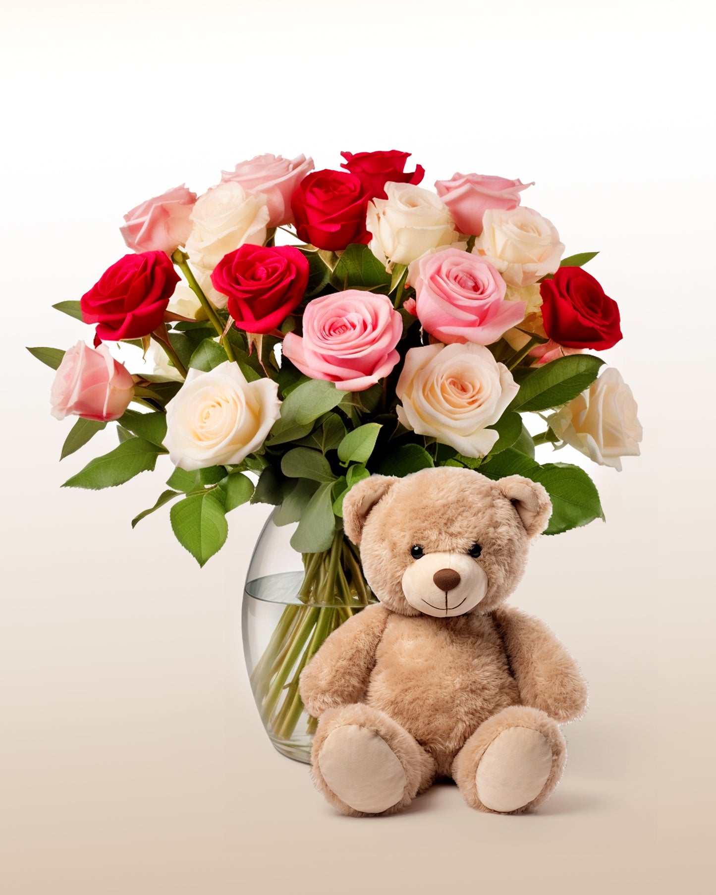 Nota.- El color de las flores y modelo de peluche puede variar de acuerdo a disponibilidad.