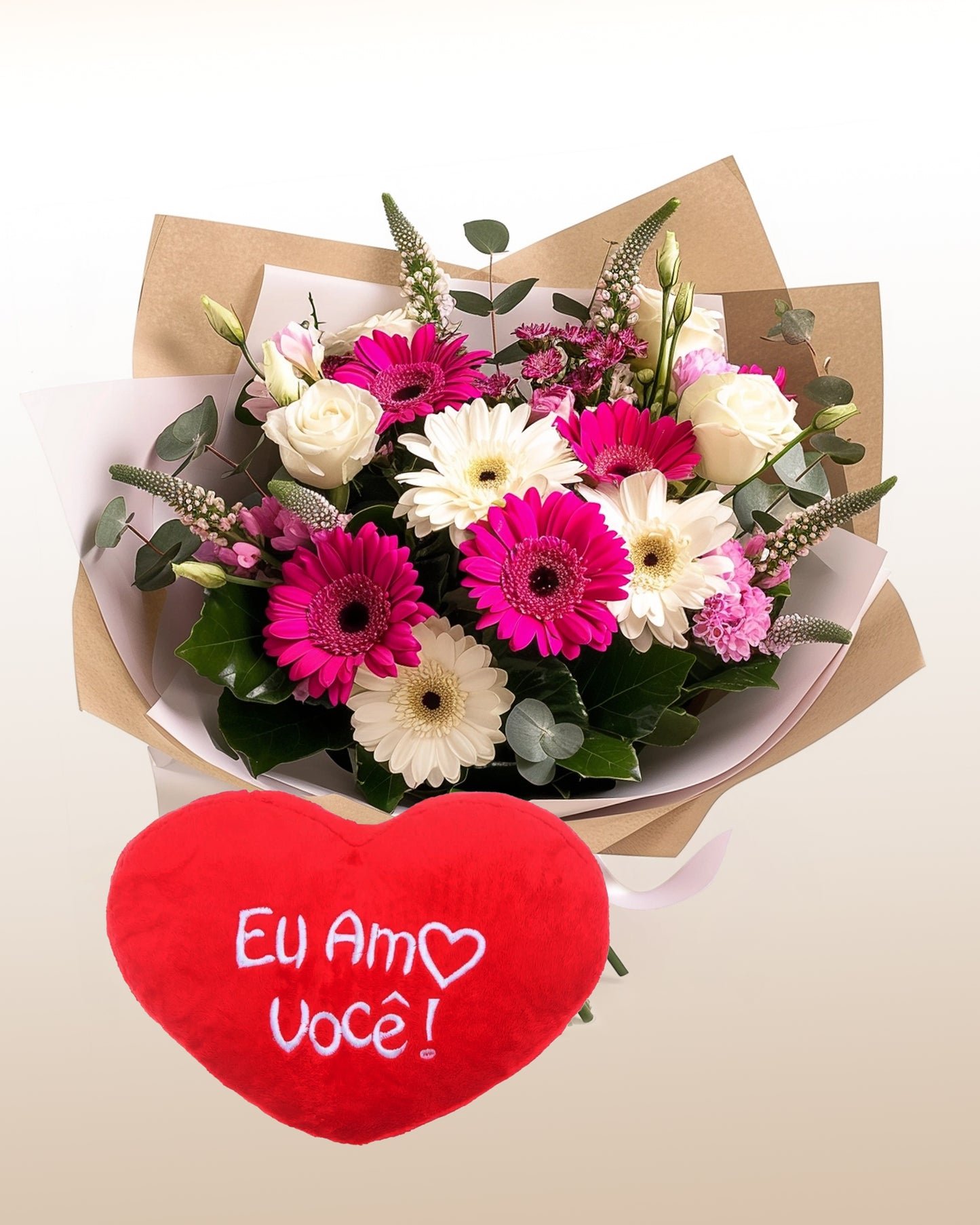 - 1 Bouquet de 12 Gérberas rosas y 6 Rosas blancas